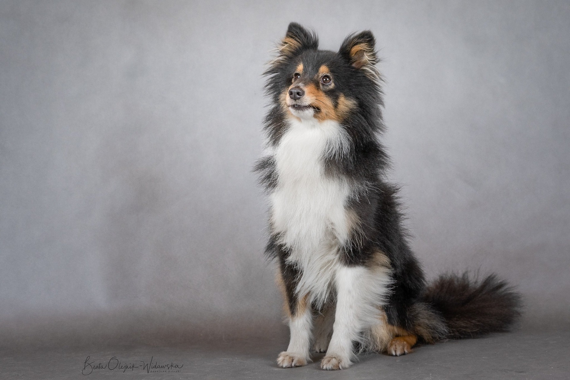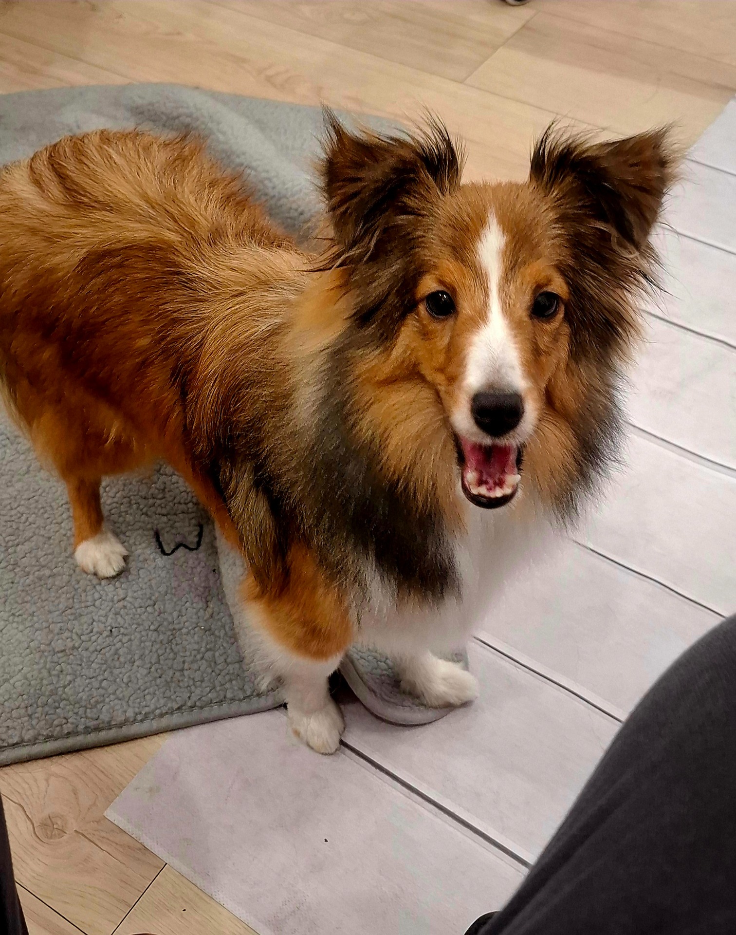 Łopi jest największą fanką Zardy, swojego "starszego brata". Jest również wrażliwą i delikatną suczką, przed którą nie stawiam wielu wyzwań szkoleniowych, próbując wspierać ją w jej naturalnym rozwoju. Bo wsparcie jest dla niej bardzo ważne – szuka go u mnie zawsze, gdy brak jej pewności lub coś ją przerasta. W domu cichutka, na zewnątrz budzi się w niej duch szetlanda (a może szczeklanda?). Dużo pracowałyśmy nad dotykiem, bo nie było to dla niej komfortowe. Uczymy się również szacunku dla starszych psów w domu, a także tego, że obce psiaki nie są takie straszne – bo jak się waży 3,5 kg, to wiele rzeczy może przerażać!